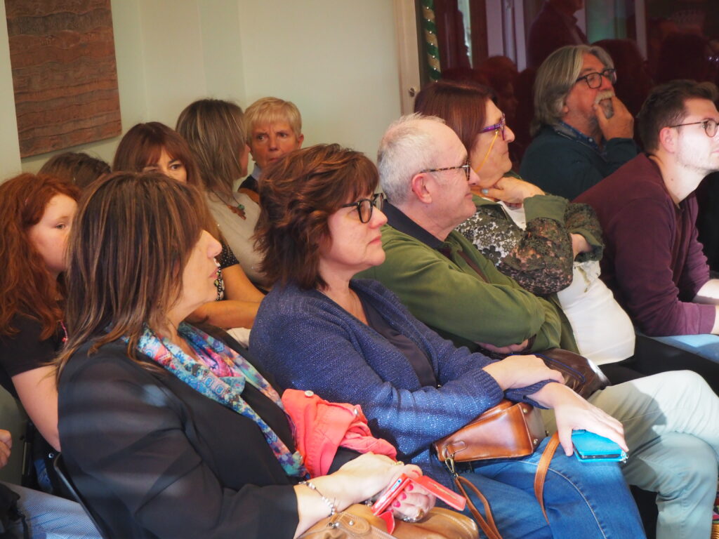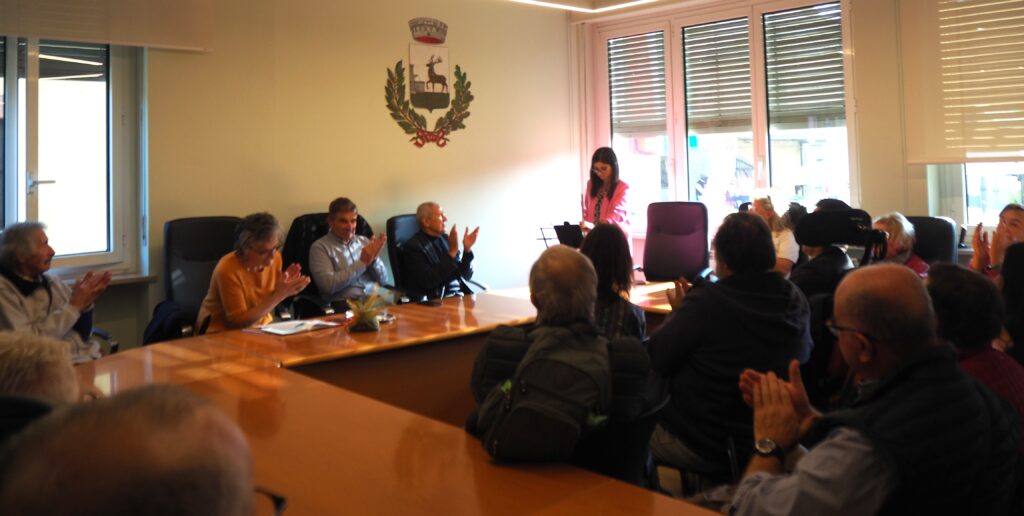 Alcune immagini dell’inaugurazione, avvenuta questa volta nella sala consigliare del municipio per consentire un miglior ascolto e una condivisione delle scelte, almeno con alcuni artisti. Al flauto, Giulia Battistino. Al taglio del nastro, provvede l’artista meno vicina alla giovinezza, Paola Gazzola Meineri, insieme al sindaco Enzo Garnerone e al presidente della Banca di Caraglio, Livio Tomatis.
