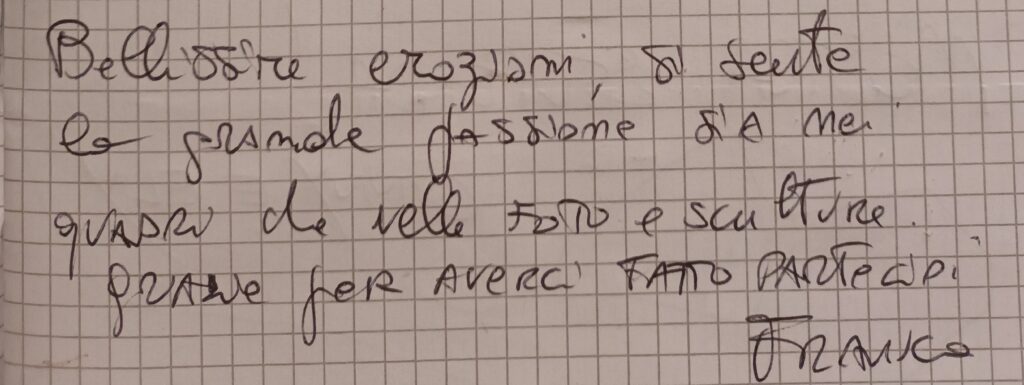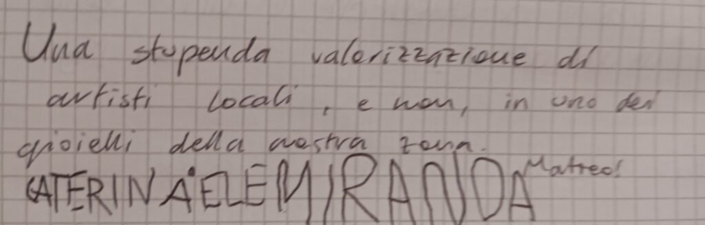 Per concludere, lunedì e martedì abbiamo vissuto due esperienze interessanti: la prima, che è per noi già “normale”, è stato accompagnare un centinaio di bambini e ragazzi a scoprire le opere di maggiore interesse in relazione alle diverse età. La seconda, che ci è nuova, è stato accogliere invece un gruppo di ospiti della Residenza per anziani di Cervasca: brillanti e interessati, hanno partecipato con gioia all’iniziativa da noi proposta, incoraggiata dalla Direttrice, realizzata dall’Educatrice e da tre volontari.